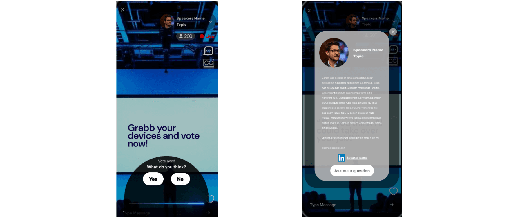 Using the design thinking method, the project began with surveys and interviews to understand user expectations and challenges around digital conferences. Insights were translated into problem definitions and design concepts, which were visualized and prototyped in Figma. The result was a playful digital conference app concept supporting live participation, interaction, networking, and long-term learning beyond the live event.